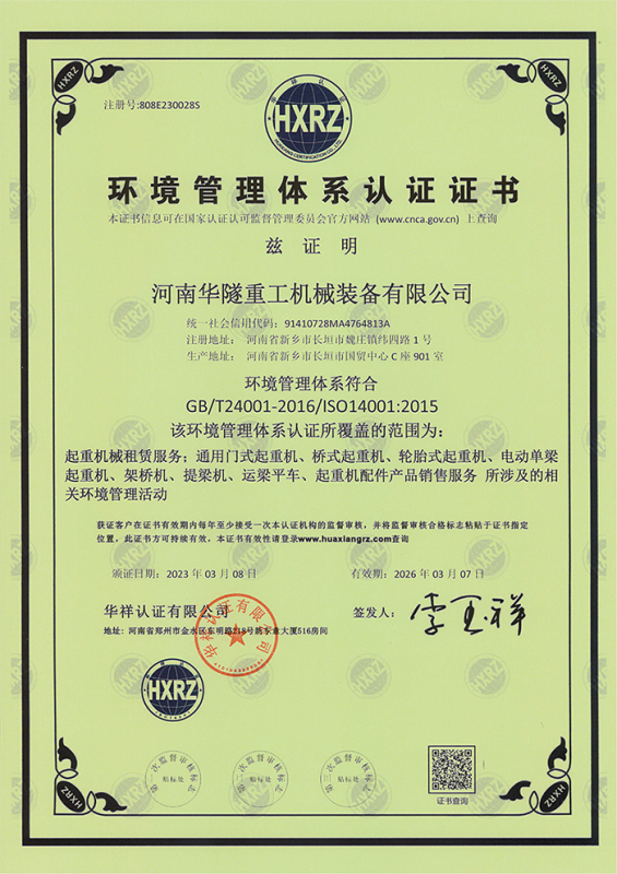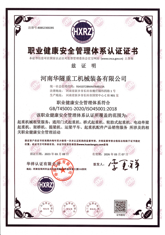 河南華隧重工機械裝備有限公司主要從事通用門式起重機、橋式起重機、電動單梁起重機,輪胎式起重機、架橋機、提梁機、遠梁平車、鋼絲繩電動萌蘆、卷揚機、起重配件制造、銷售:起重機械租賃、安裝和維修,起重設(shè)備園收,機械設(shè)備維修,鋼結(jié)構(gòu)工程承包,橋梁工程及技術(shù)咨淘服務(wù),銷售五金制品、機電設(shè)備:建設(shè)工程監(jiān)理,建設(shè)工程設(shè)計,各類工程建設(shè)活動,建筑勞務(wù)分包,建筑物折除作業(yè),施工作業(yè),工程管理服務(wù),土石方工程施工,裝如發(fā)運。  公司已通過IS0國際質(zhì)量、環(huán)境、健康與安全三合一標(biāo)準(zhǔn)認(rèn)證,特種設(shè)備制造許可證和特種設(shè)備安裝改造維修許可證。擁有完熟的質(zhì)量管理體系。嚴(yán)格的管理制度,強大的生產(chǎn)能力和先進的檢測手段,在保證產(chǎn)品質(zhì)量的同時,也具備了極強的市場競爭力。  公司堅持科技創(chuàng)新為理念,產(chǎn)品質(zhì)量為核心,注重信譽,建立了減信可靠、快捷、思速。便利周到的售后服務(wù)網(wǎng)絡(luò)。  我們擁有的技術(shù)專家和技術(shù)服務(wù)隊伍為客戶提供充善的售前技術(shù)支持和全天候的售后服務(wù)體系,讓您無后顧之憂,享受一站式的超值服務(wù)。  “華隧重工,伴您成功“是華隧重工永遠的宗指,真被的希望與各界朋友攜手并進。共創(chuàng)輝準(zhǔn)!